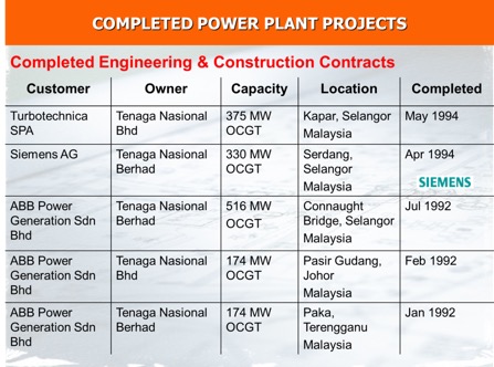 3 × 125MW Kapar power plant civil works and EPC contracting services.