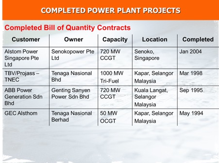 Completed Power Plant Projects